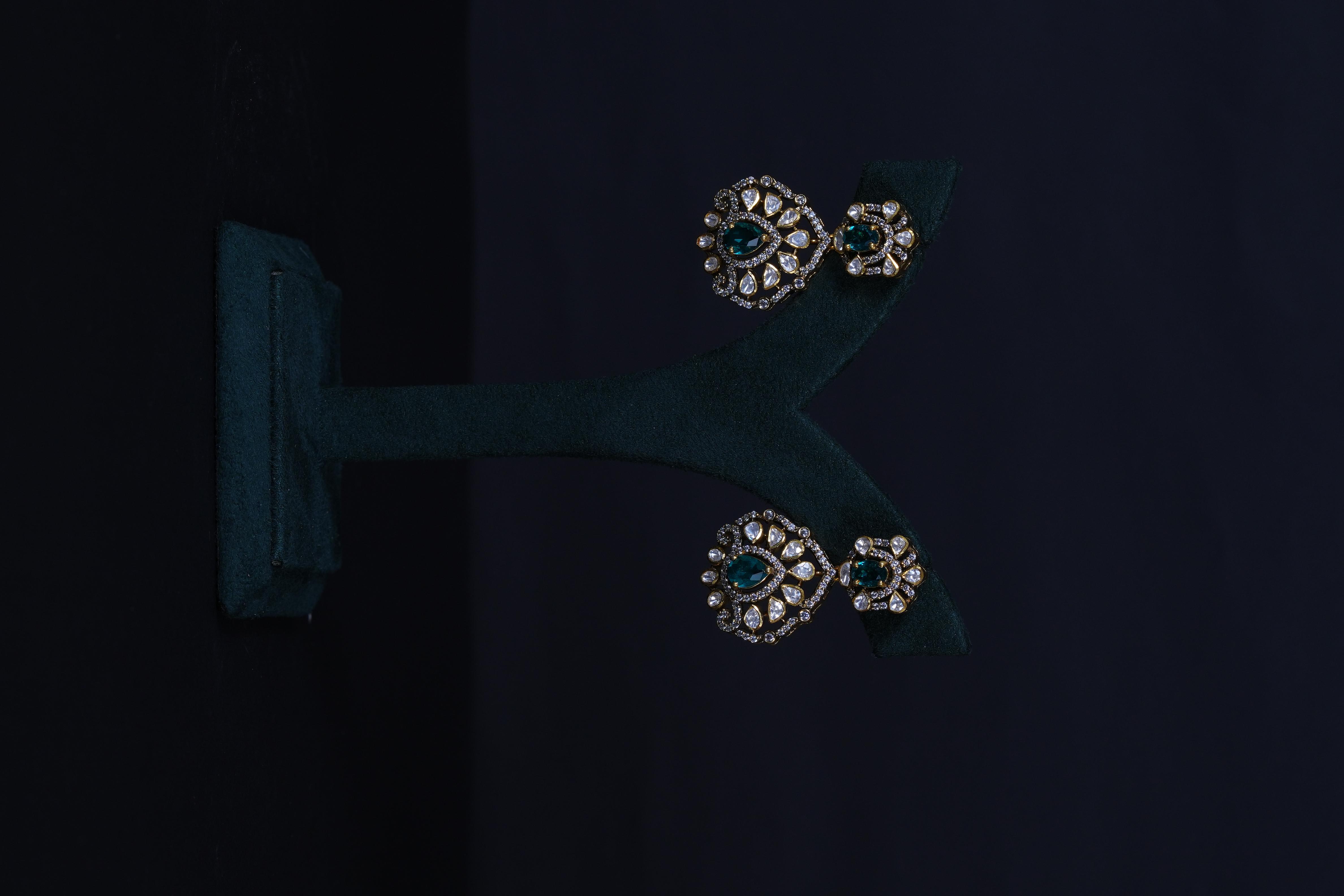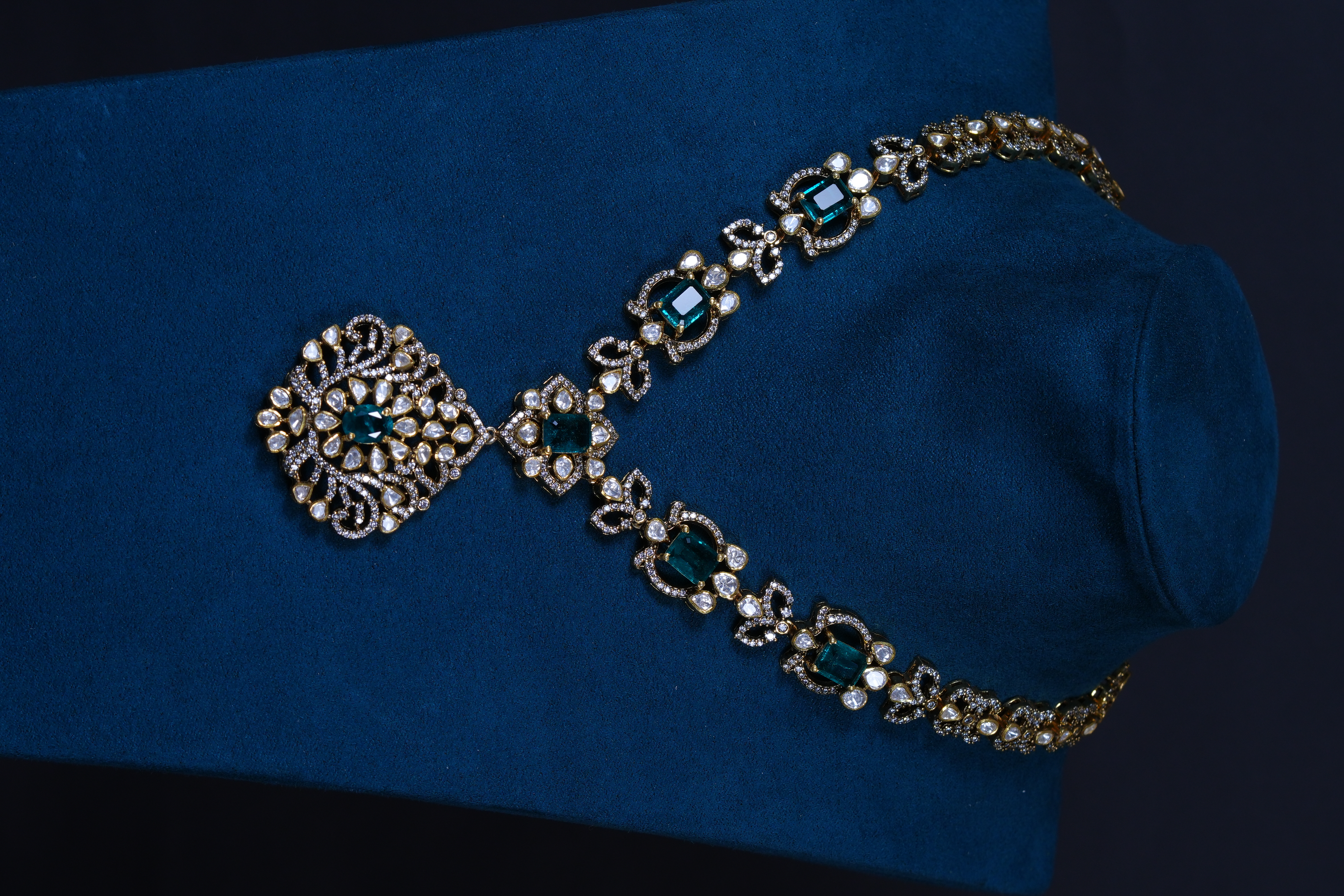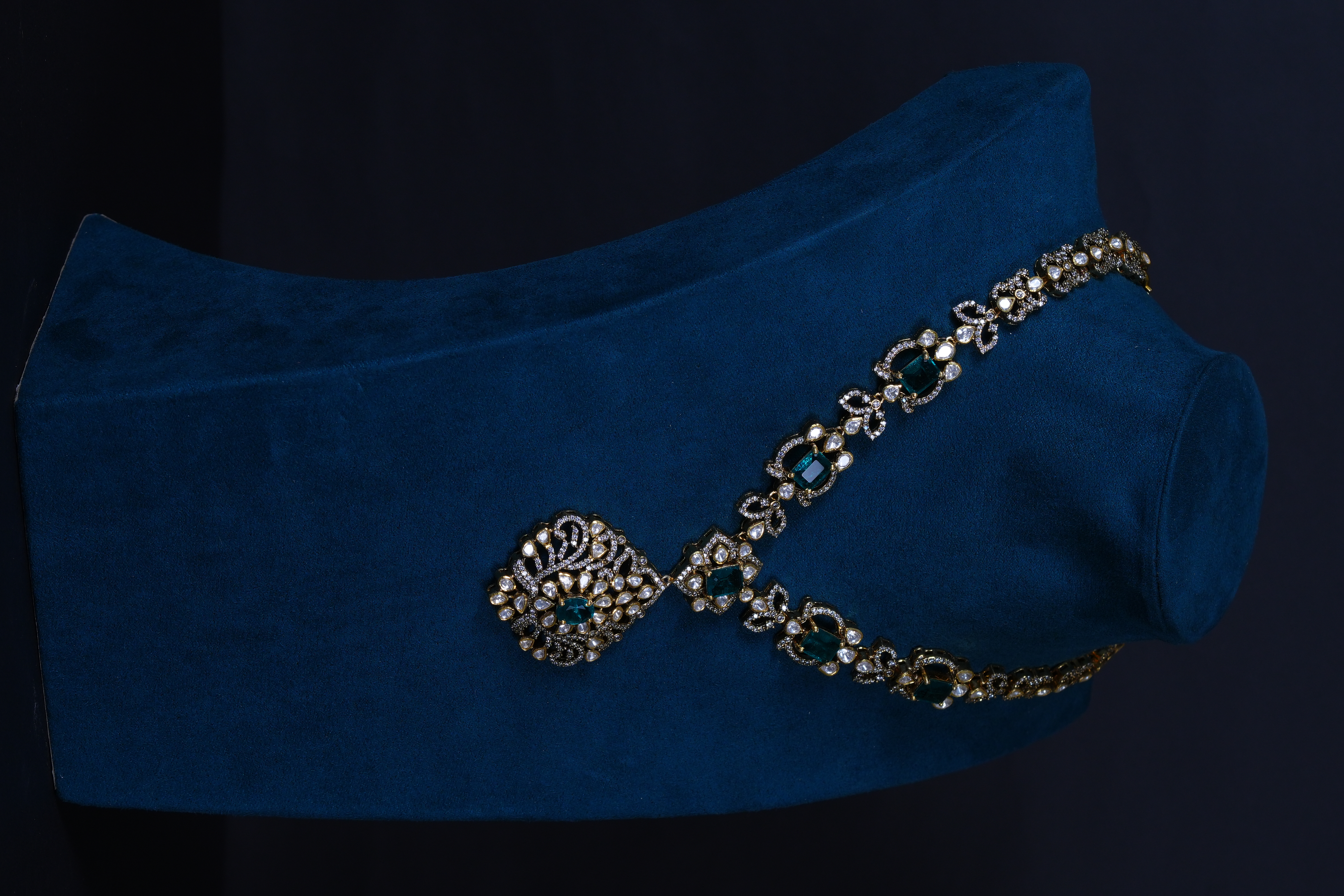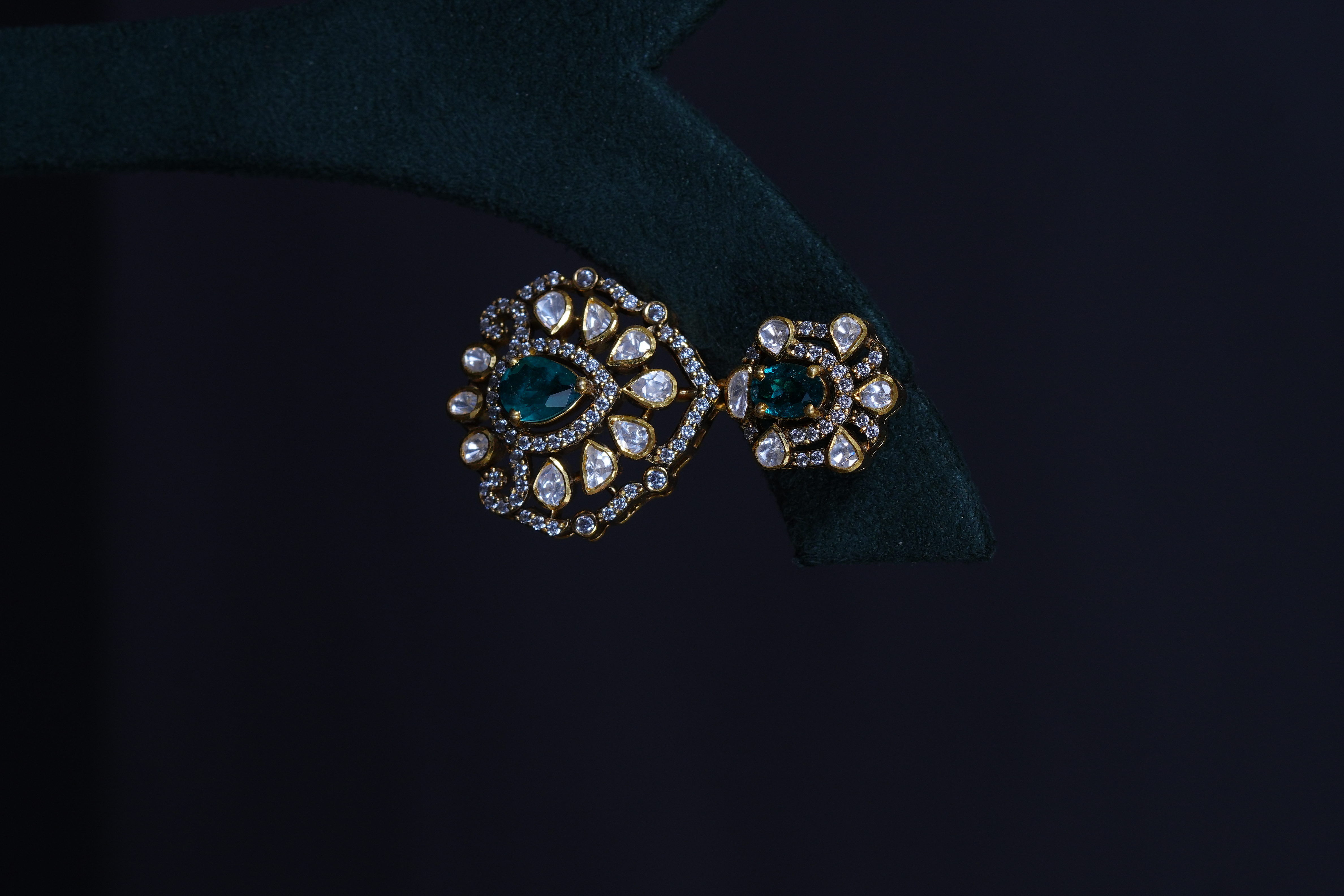 Elegant Emerald Moissanite necklace and earrings set crafted in 92.5 sterling silver. A graceful blend of rich emerald tones and brilliant sparkle, perfect for weddings and special occasions.