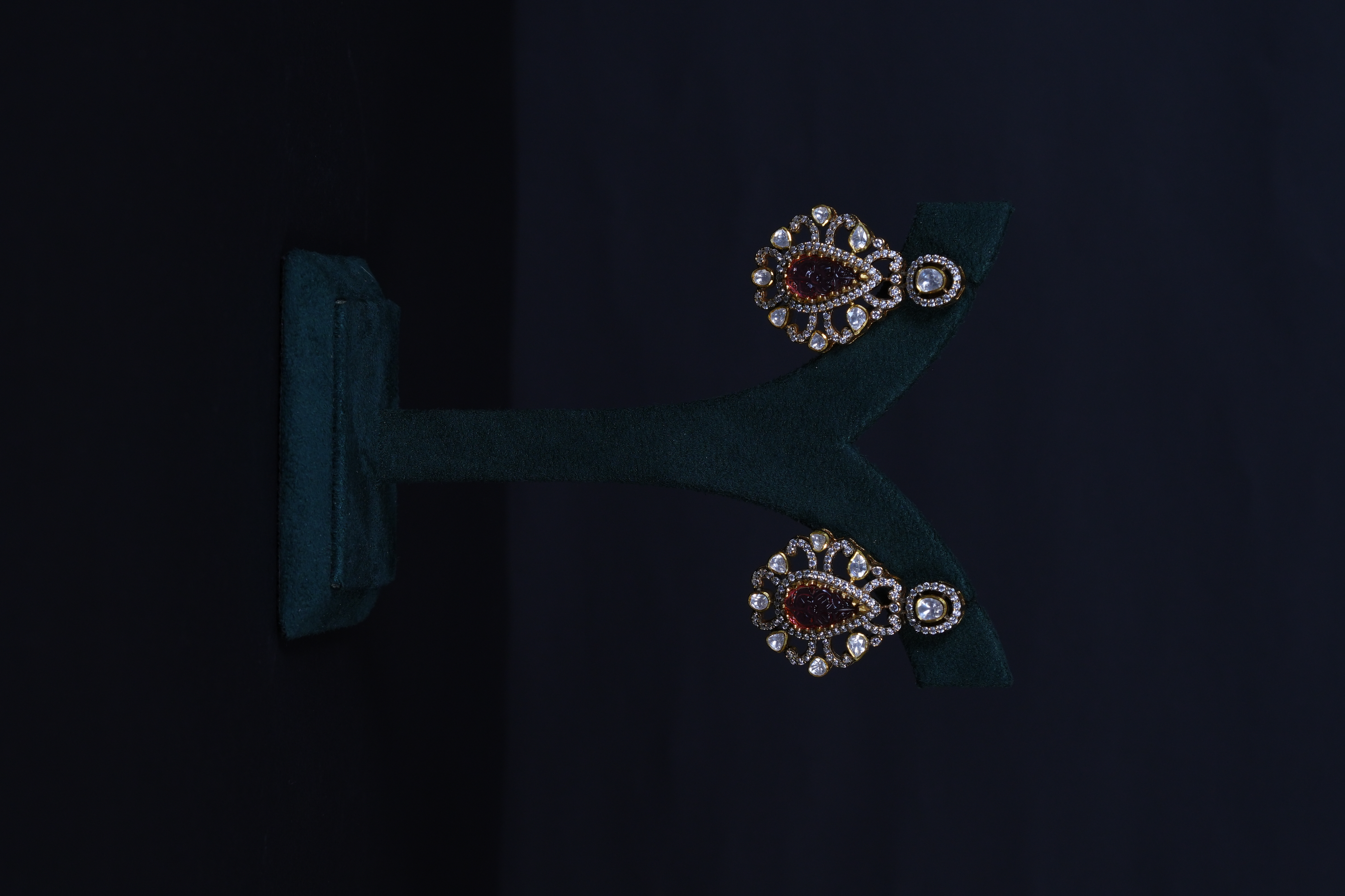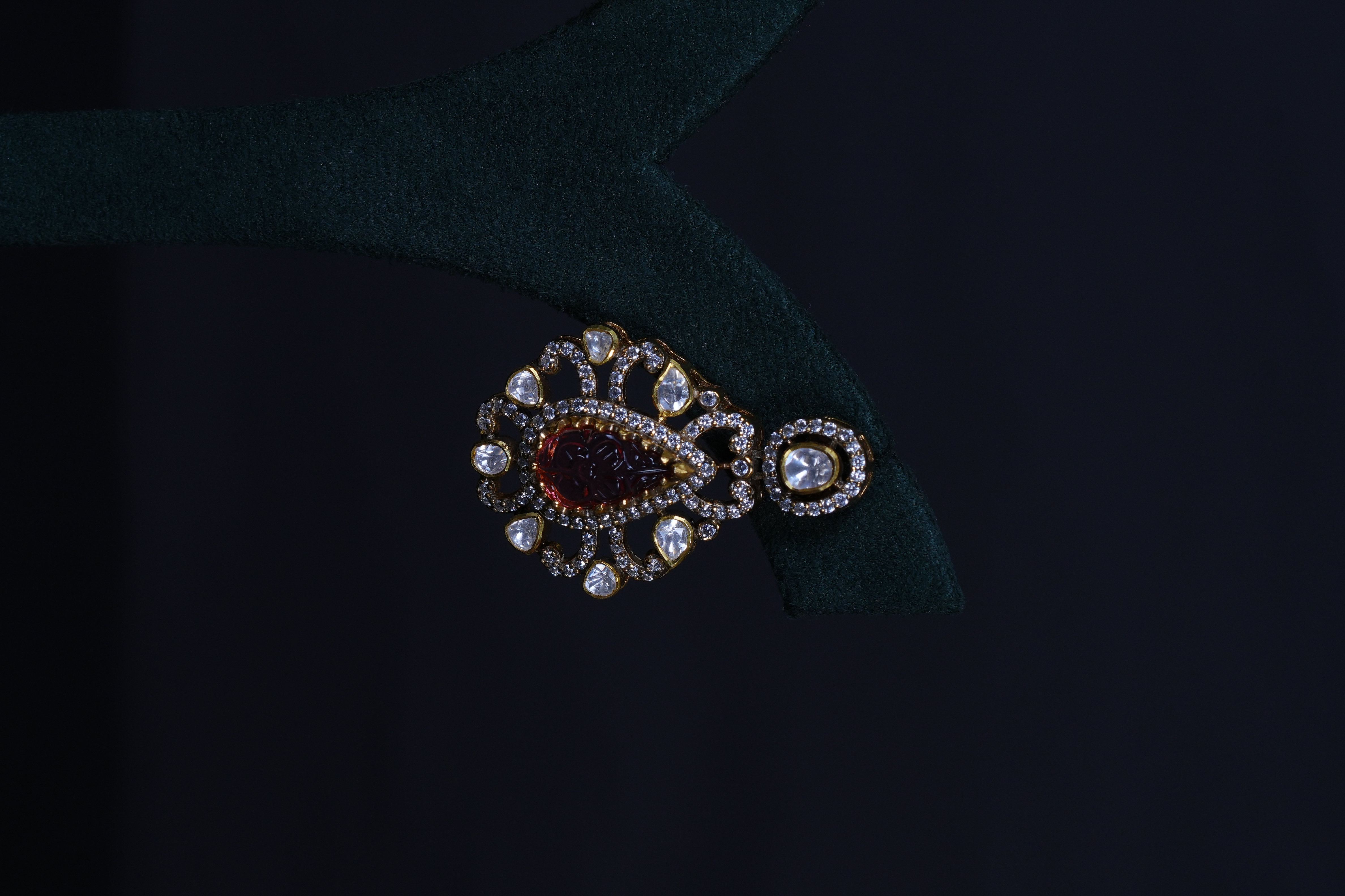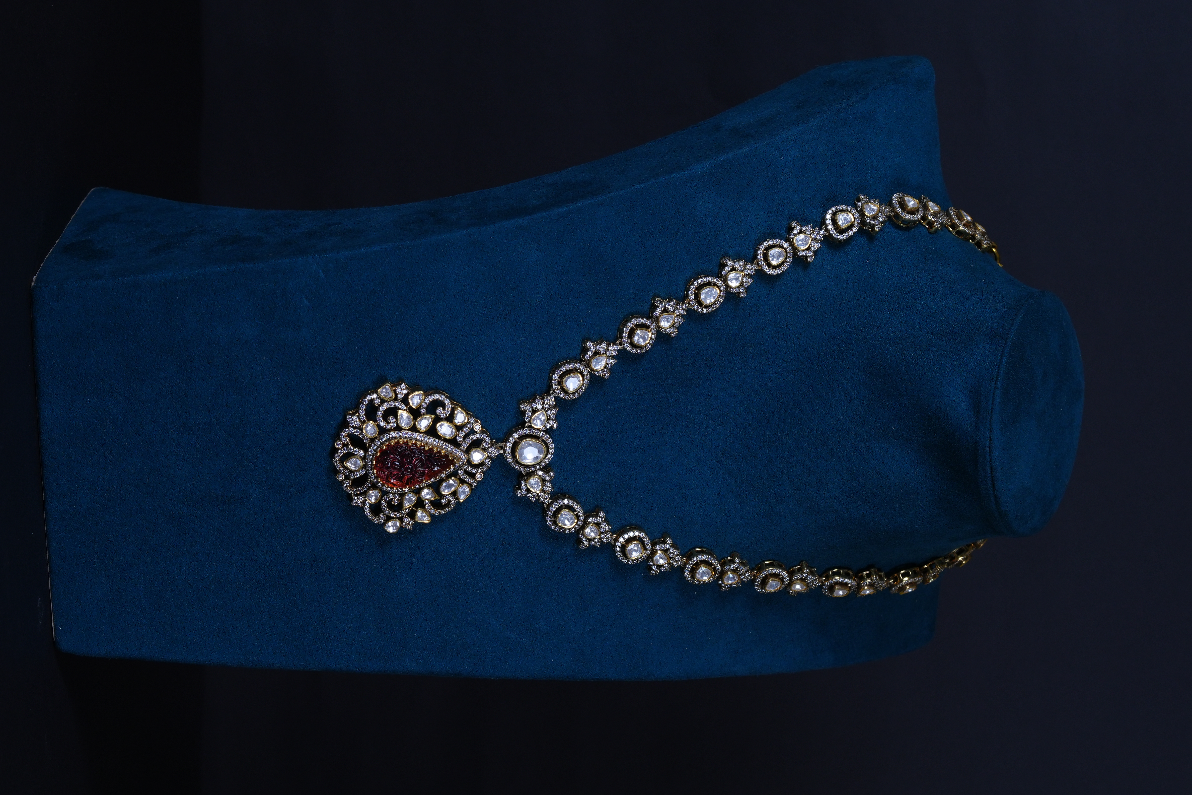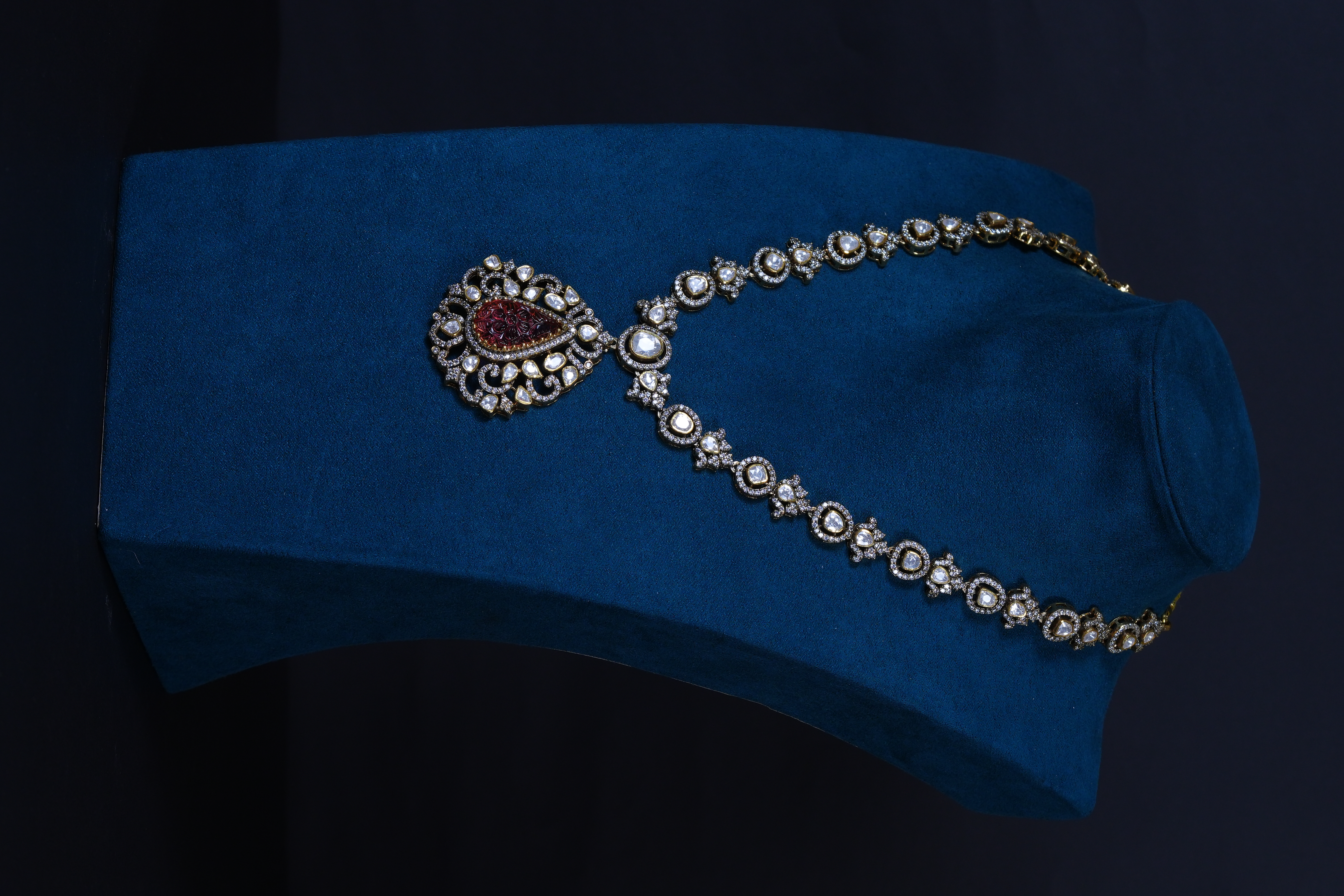 Real Polki and carved ruby necklace and earrings set crafted in 92.5 sterling silver. A timeless heritage-inspired design perfect for bridal and grand festive occasions.