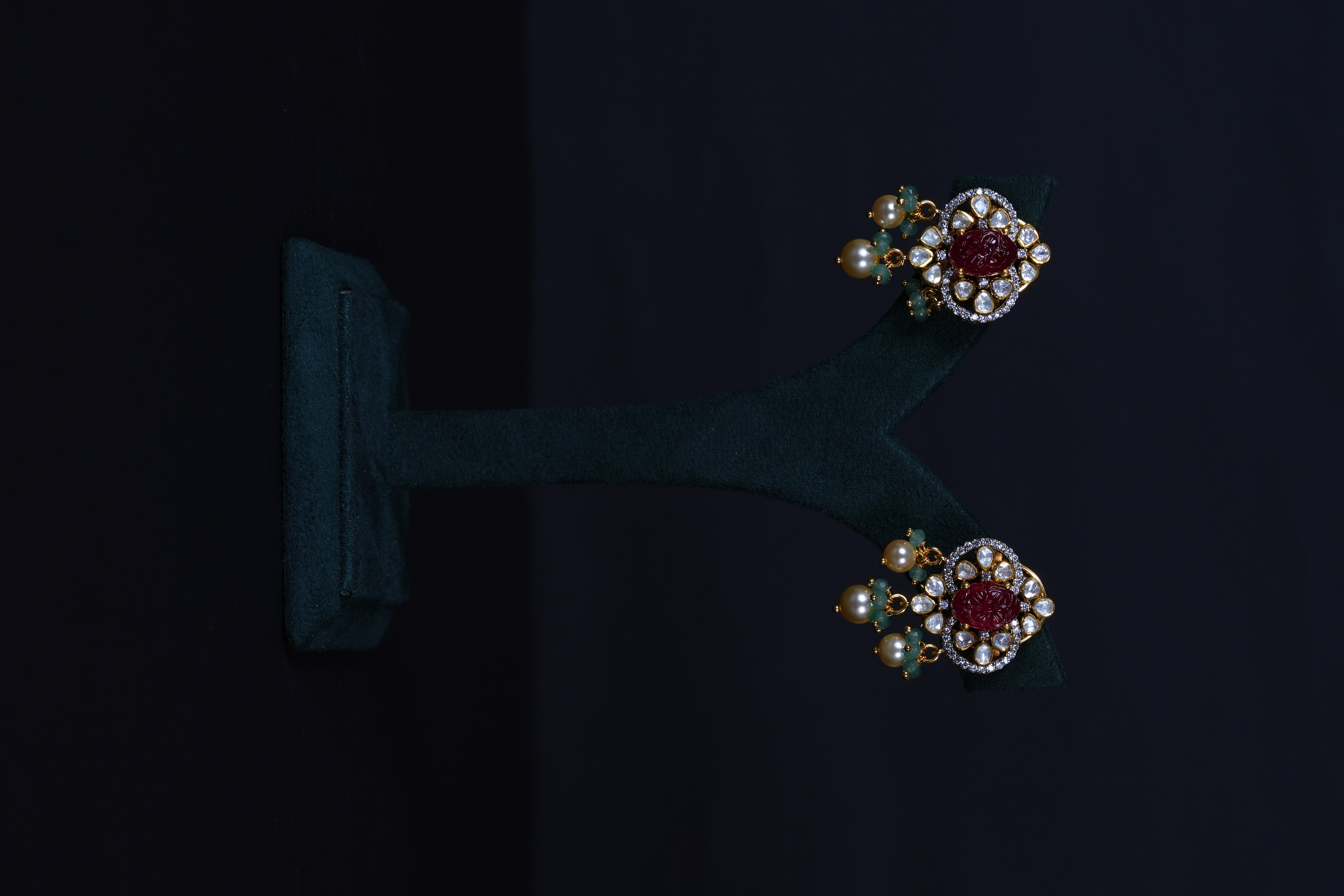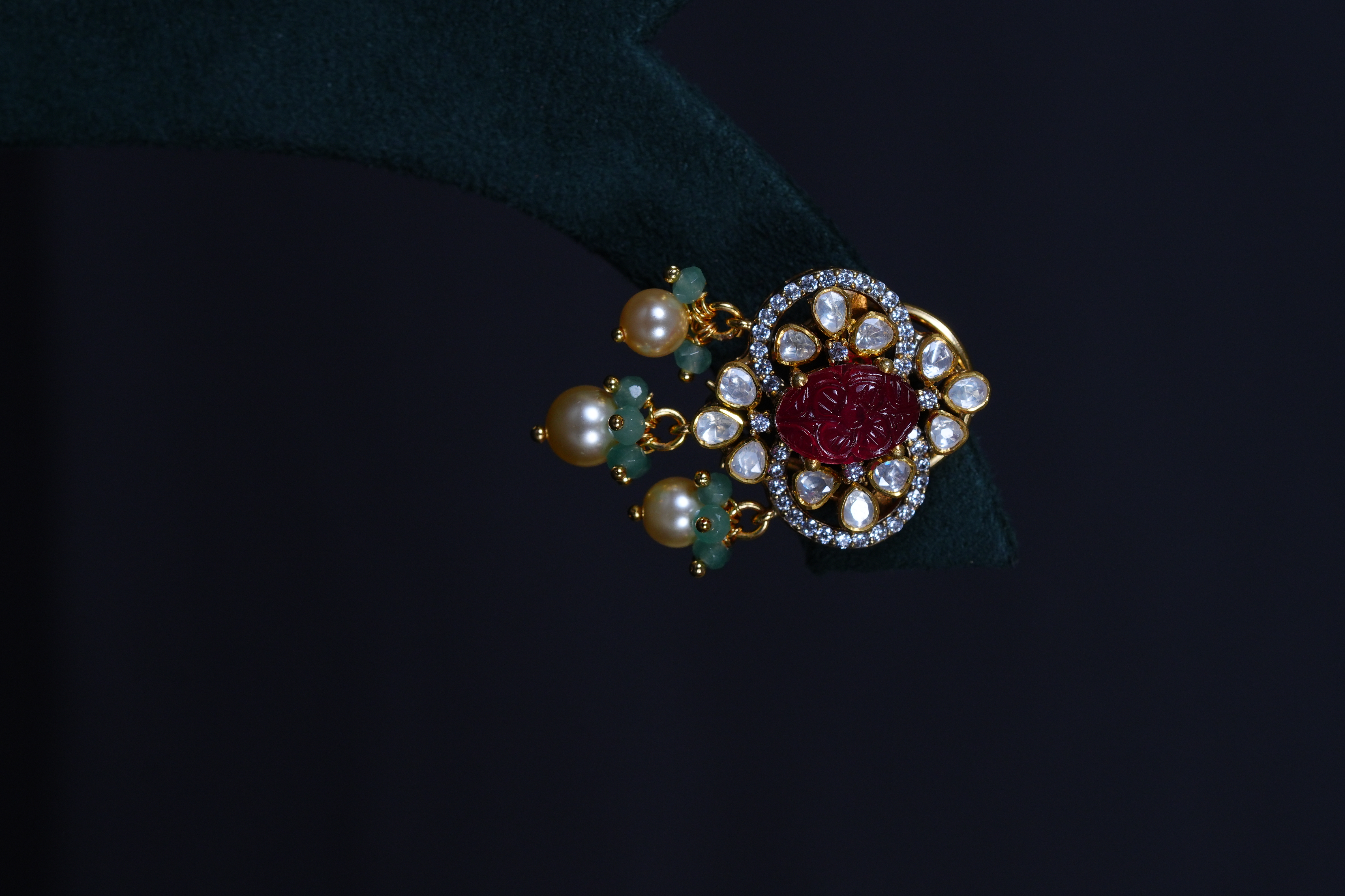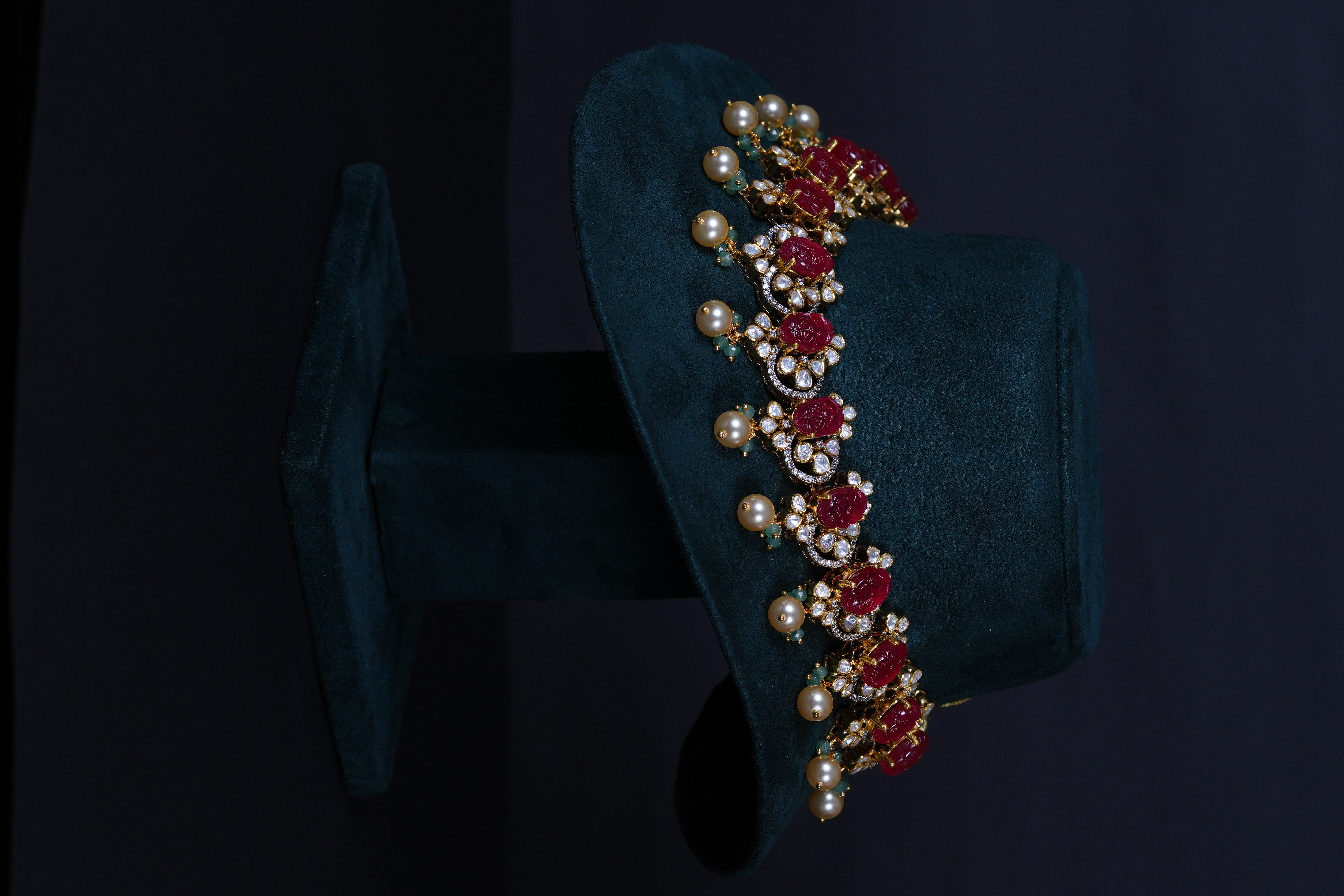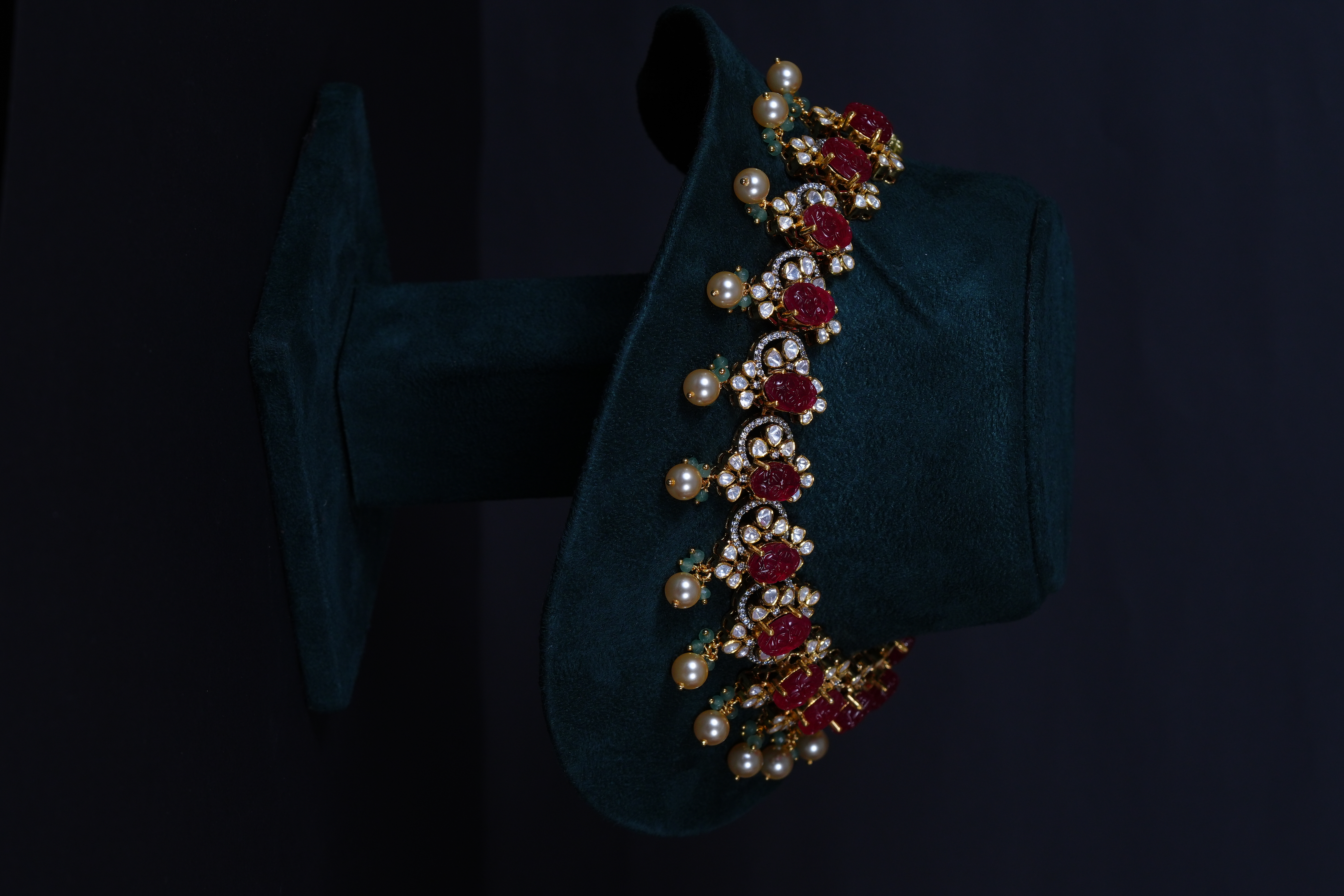 Royal Carved Ruby necklace and earrings set crafted in 92.5 sterling silver, enhanced with brilliant moissanite stones. A bold and elegant statement piece perfect for weddings and grand celebrations.