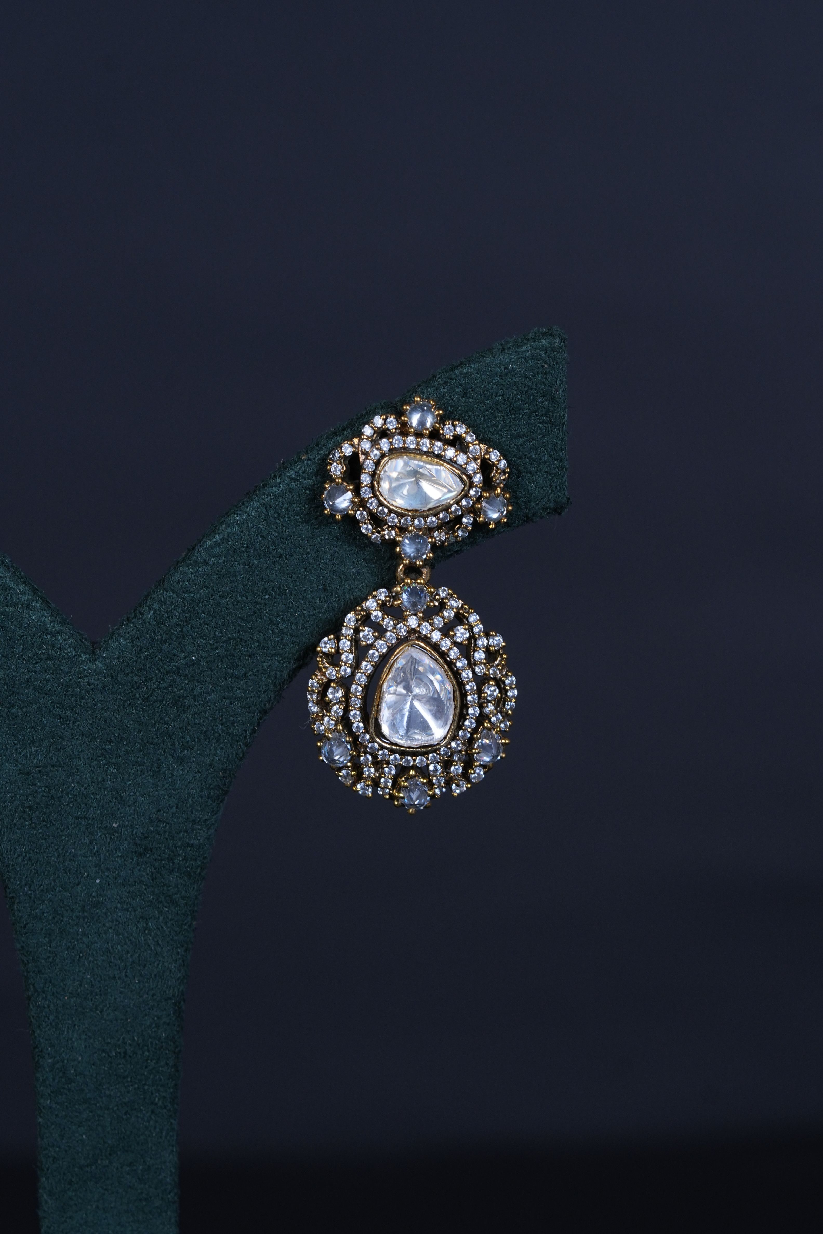 Statement Kundan pendant mala with mehendi green beads. A bold imitation jewelry piece designed to add traditional elegance to festive and wedding looks.